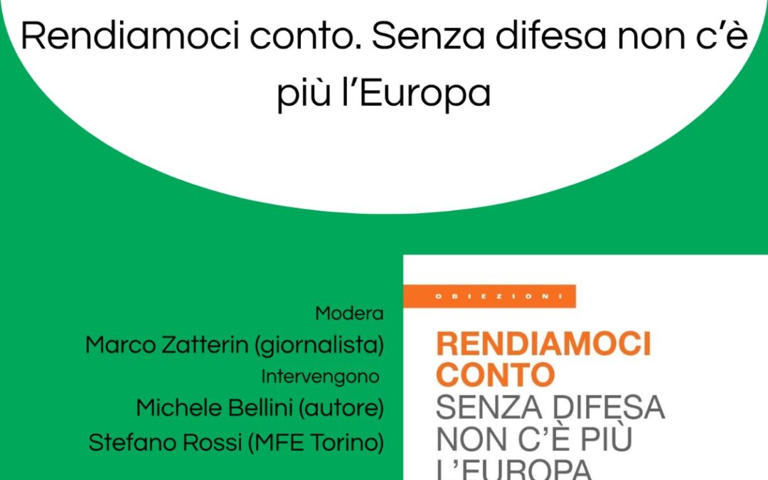Il 4 dicembre 2025, alle ore 18.00, presso la Libracciaio Libraccio di Torino in Via Ormea 134/B, il Centro Einstein di Studi Internazionali, in collaborazione con il Movimento Federalista Europeo e Gioventù Federalista Europea, presenta il nuovo libro di Michele Bellini, intitolato Rendiamoci conto. Senza difesa non c’è più l’Europa.